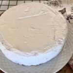Cuando la nata este lista empieza a decorar el pastel con ayuda de una espátula hasta dejarla completamente cubierta como la (foto nº5). Con el dulce de leche haz unas rayas encima del pastel y por último ralla un poco de chocolate por encima del pastel y ya la tendrías lista como la última fotografía.